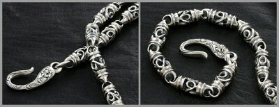 透かし彫りを巧みに使用したシルバー製の本格的ウォレットチェーンです。
