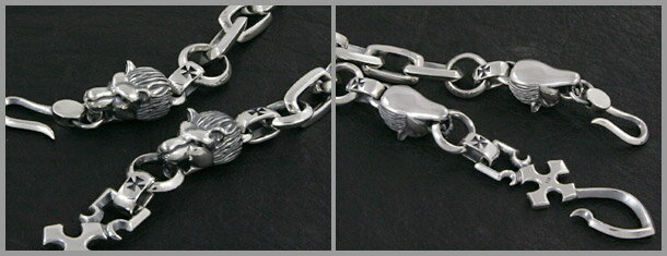 ハードな雰囲気のライオンとシンプルな鎖を繋いだシルバーウォレットチェーンです。