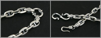 無骨なパーツを丁寧にしっかりと繋ぎ合わせたシルバー製のウォレットチェーンです。