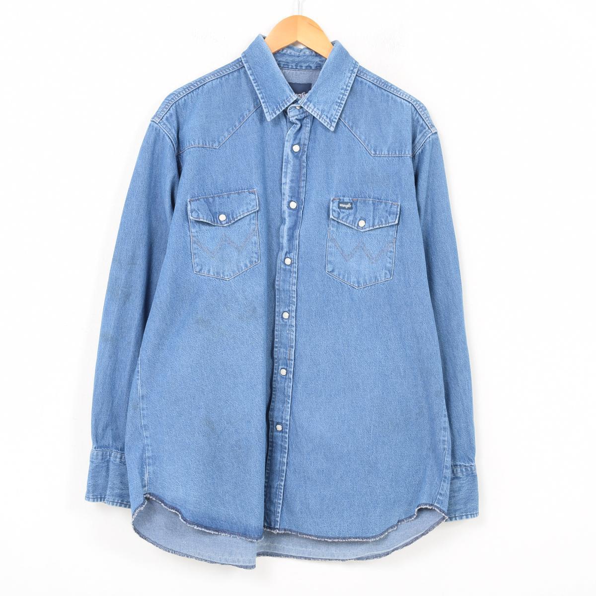 80~90年代 ラングラー Wrangler 長袖 デニム ウエスタンシャツ USA製 メンズL ヴィンテージ /wao4946 【中古】 【180310】【SS1901】