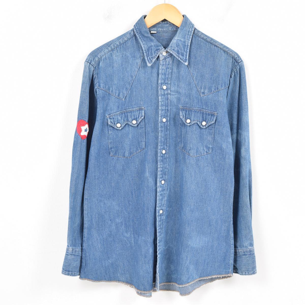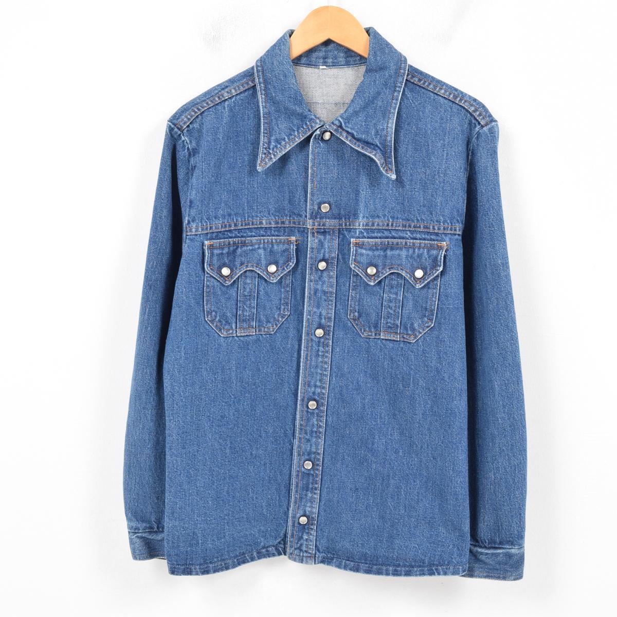 70年代 UNKNOWN 長袖 デニムウエスタンシャツ メンズM ヴィンテージ /war9131 【中古】 【180507】